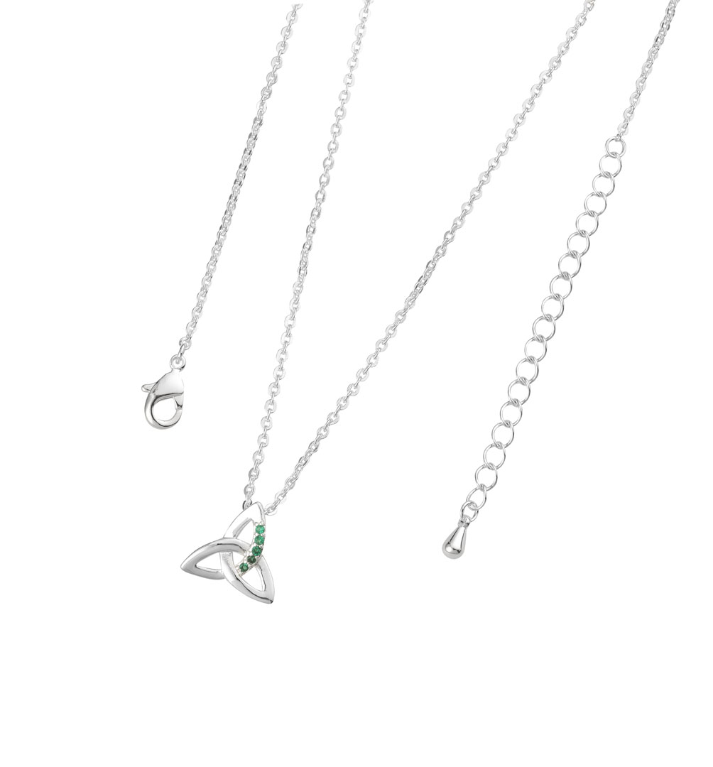 Silver Trinity Pendant W/Green Stones.