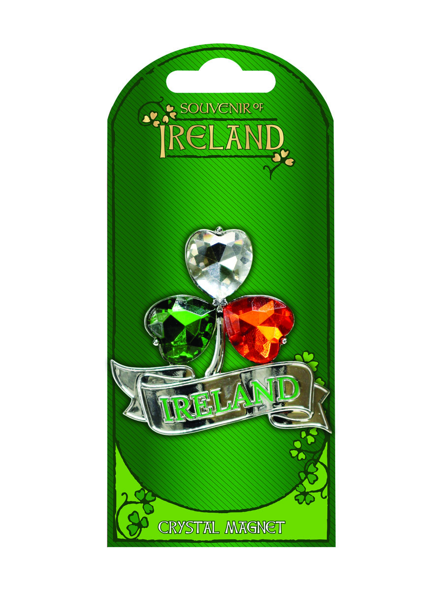 **Tri-Colour Crystal Silver Shamrock Magnet On Display Card