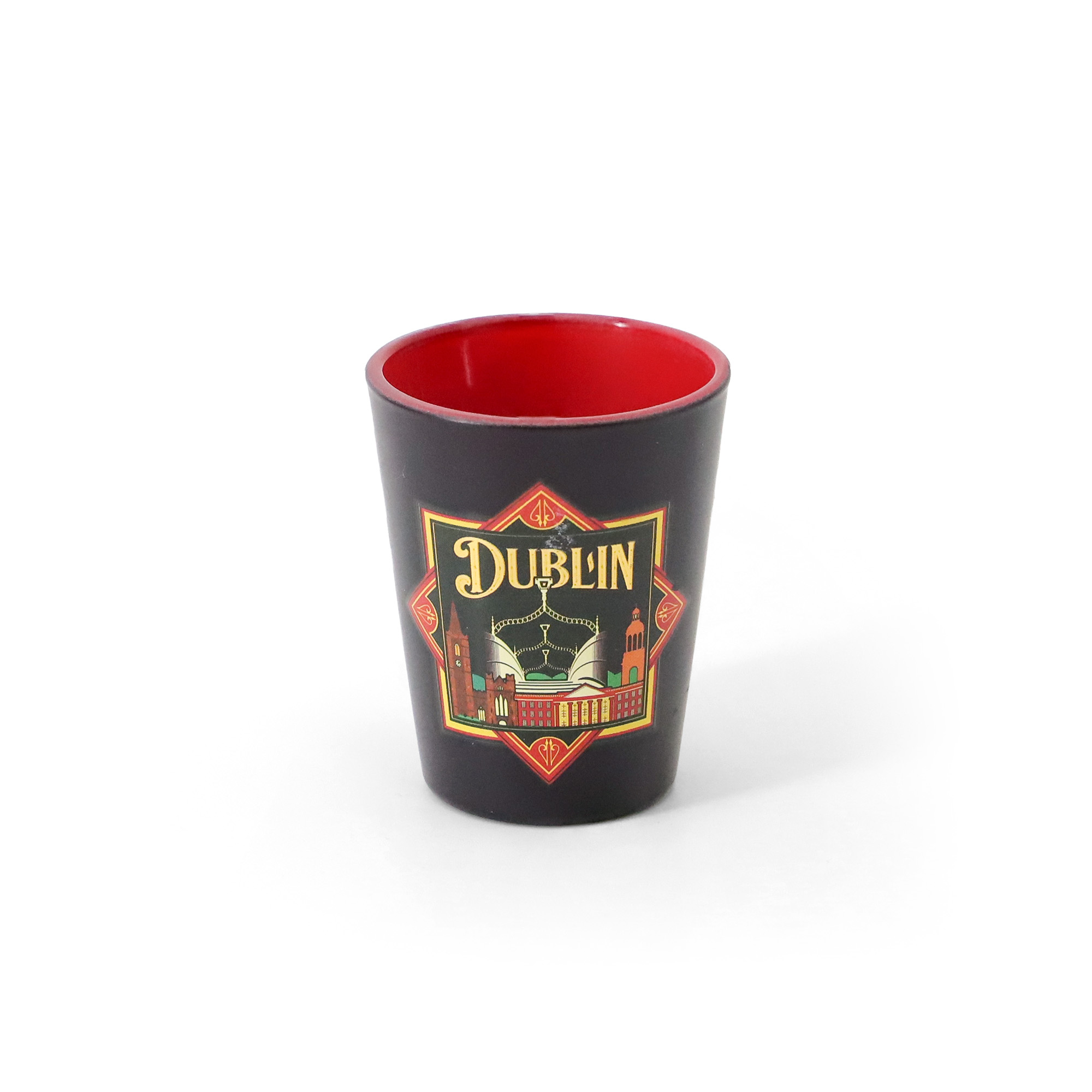 VINTAGE – DUBLIN RED & BLACK SHOT GLASS NEW 2025