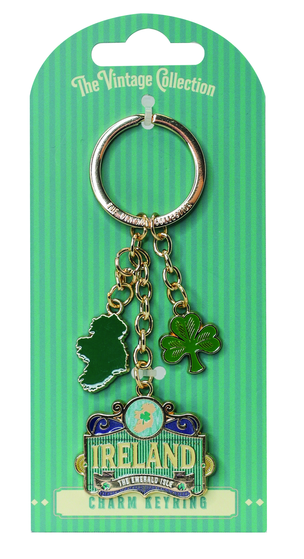 VINTAGE – IRELAND MAP GREEN CHARM KEYRING – NEW 2026